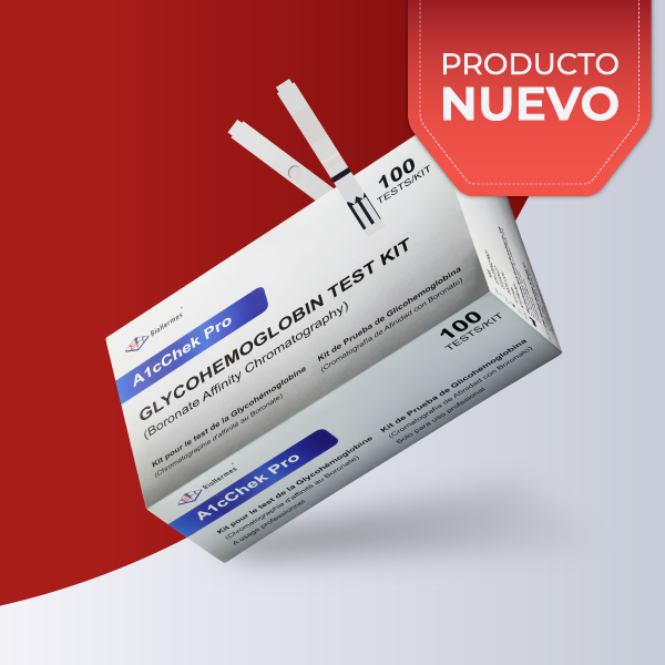 - Presentación:1 Chip de Código | 100 Piezas de Tiras de Prueba HbA1c | 100 Piezas de Muestreador | 1 Botella de 35 ml de Buffer A | 1 Botella de 35 ml de Buffer B | 100 Recolectores de Sangre | 1 Instructivo de Uso